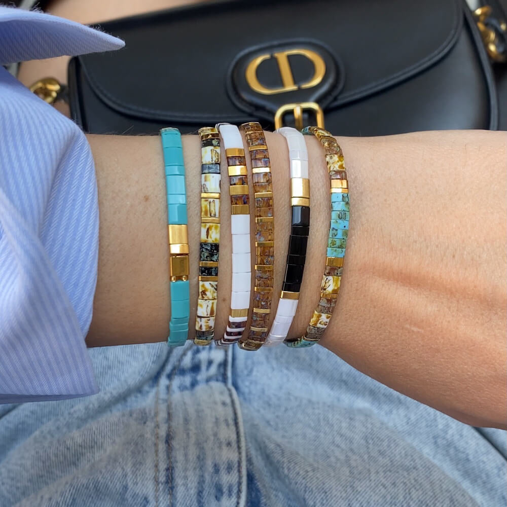 Our standard size bracelets are elastic and stretch to fit standard wrist size 15-17 cm. This size fits most of our clients.